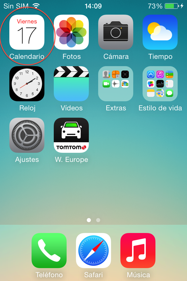 Para verificar que el calendario está correctamente configurado, en la pantalla de inicio abrimos la aplicación de calendario: