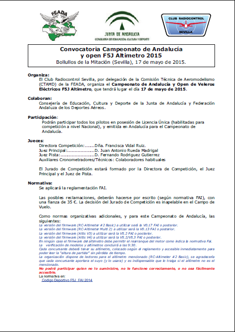 Convocatoria Campeonato Andalucía F5-FAI 2015 y Open Nacional