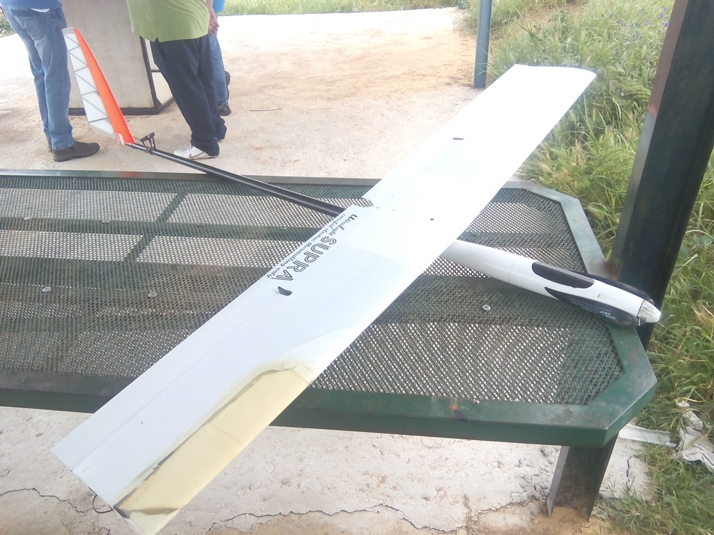 Y antes de meternos de lleno en lo que fueron los vuelos, la anécdota del día, que aunque nos la tomamos con buen humor fue una verdadera ‘malajá’ para su sufridor … José Enrique se viene desde Jerez y se deja una de las orejuelas de su Supra; carga el coche de núcleos de foam encargados para fabricar alas y se olvida de lo importante.