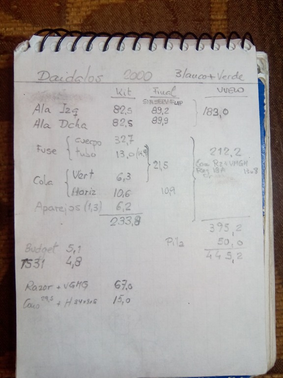 Datos de los vuelos y del modelo de Luis (daidalos 2000)