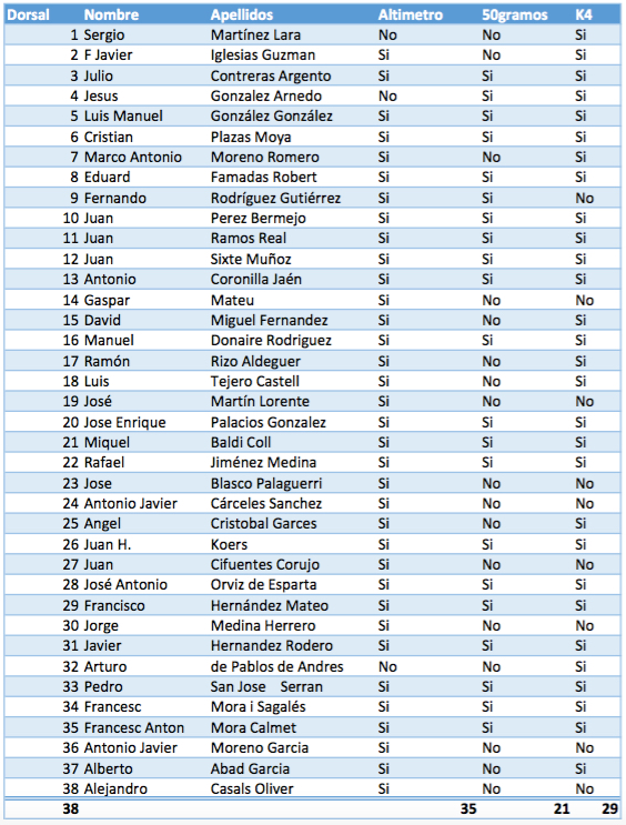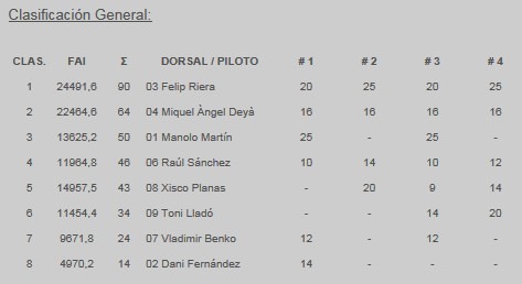 | Clas | Apellidos | Nombre | Puntos FAI | Modelo |
