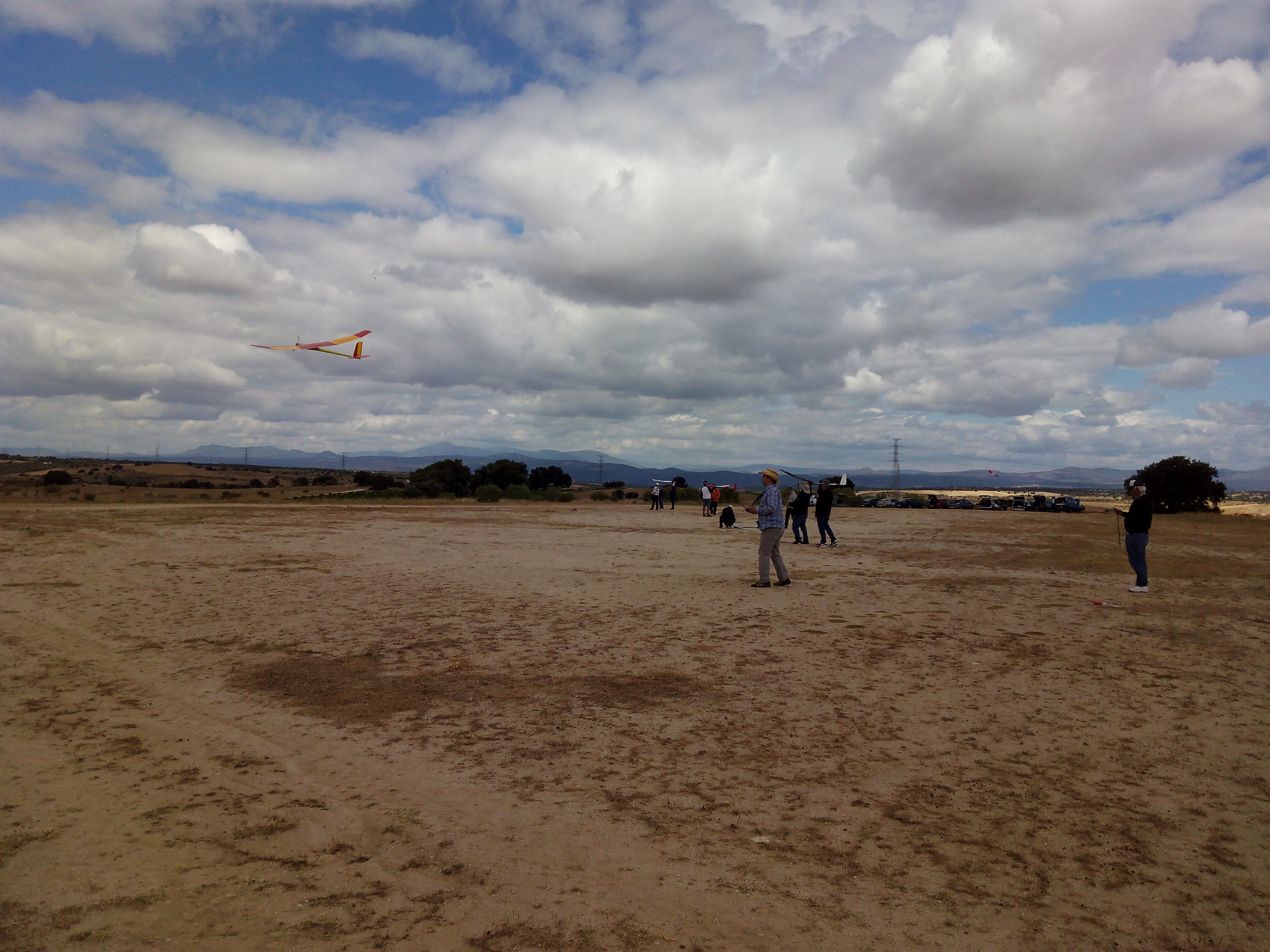 Hemos tenido una fresca mañana de viento con rachas intensas del SO, lo cual ha sido de lo más agradable si consideramos que la alternativa en el mes de junio en la meseta castellana es asarse de calor. Pero entre el viento que se anunciaba protagonista y las previsiones de posibles chubascos de algunas páginas web ha hecho que algunos veleristas recularan en vez de echarse a la carretera camino de Villamanta para concursar, una pena porque se han perdido una espléndida mañana de vuelos.