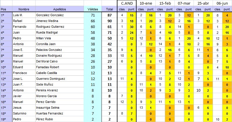 Muchas gracias a los socios del Club presentes, Alfonso Nieto Fernández (Presidente), Antonio Fenoy Tortosa, David Fenoy Aguilera, Marcos Rodríguez Rodrigo, Esteban Castellano Linares, Francisco Javier Delgado Sueza, Pedro Pérez Rubio, Antonio Pérez Martínez, Miguel Angel Fenoy Tortosa, Hilario López Guillen y Antonio Molina García que además se responsabilizó del ordenador y la introducción de datos; igualmente, gracias al resto de socios por ‘prestarnos’ las instalaciones.