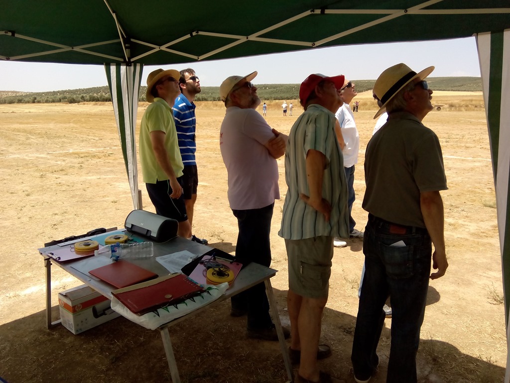 Como decía al principio un concurso movidito en todos los aspectos… el primer grupo del quinto vuelo, incluido Del Moral que pudo seguir volando, haría unos buenos tiempos y unas buenas tomas mientras que en el segundo grupo, Juan, Jose Enrique y Fernando le dan un repaso a Coronilla y Luis haciendo el doble de tiempo. Pedro Pérez no podría volar por el incidente en el vuelo anterior y cogió los trastos de cronometrador y prestando a su vez ayuda al piloto que le tocaba, todo un comportamiento deportivo.