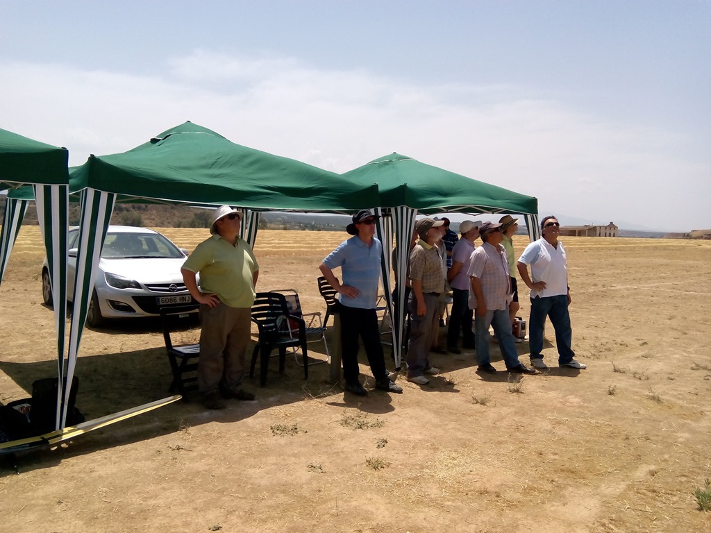 Sin embargo Fernando empieza a ‘luchar’ una térmica y se le suma una rapaz, se mantiene, por lo que el Donaire avisa a su piloto, Rafa, y éste se suma también, ambos se mantienen y Luis pendiente más de las conversaciones que del avión, que no quería quedarse en vuelo aunque mantuviera a duras penas la altura, decide sumarse igualmente, sin verlos aún, a la zona de Fernando y Rafa y … los tres aguantan y aguantan hasta llegar a pasar los 9’45”. Por el estilo pasaría en el segundo Grupo, Famadas Coronilla y Donaire llegarían casi al máximo de tiempo mientras que Del Moral, Pedro y Juan se verían en el suelo mucho antes. Juan tendría un problema con un servo de flap y no pudo conseguir un vuelo, teniendo además que cancelar el movimiento de ambos flap’s para poder continuar las siguientes mangas.