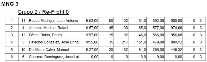Se ‘repiten’ los resultados en el segundo grupo, todos menos uno casi llegan al máximo de tiempo de vuelo, pero si hay diferencias en las tomas y en las alturas de partida, los puntos se sabrán cuando salgan impresos… muy difícil de adivinar aunque se comenten los datos del vuelo entre los pilotos.