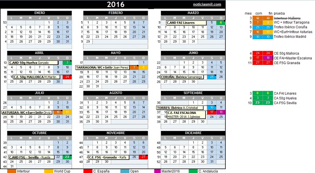 Estos calendarios, como dice el ‘asunto’ son oficiosos, los calendarios oficiales serán los publicados tanto por RFAE como por FEADA (en este caso)