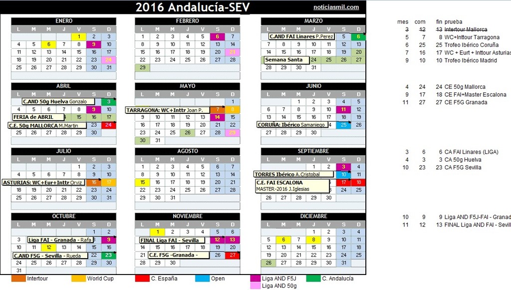 Calendario de pruebas Andaluzas/Extremeñas (todas abiertas)