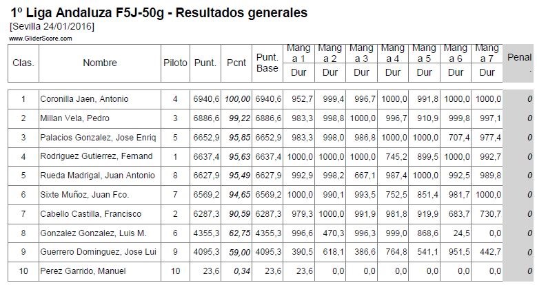 Ya comenzó también la Liga Andaluza de 50g para el 2016 y en la primera prueba la clasificación quedaría: