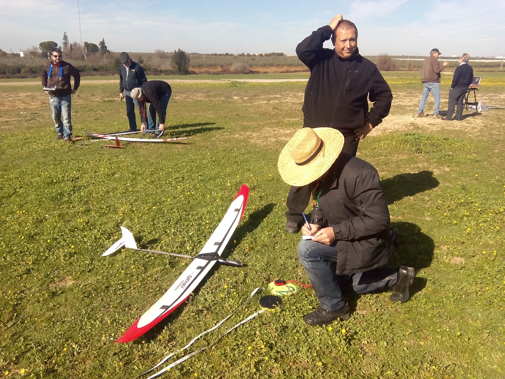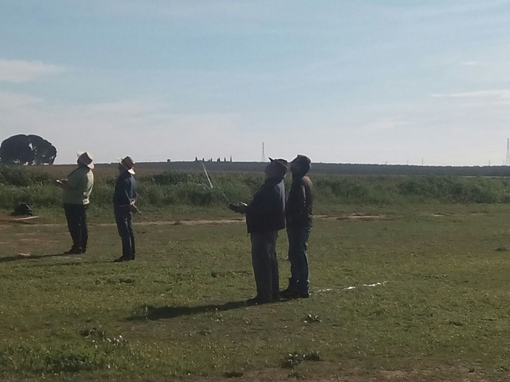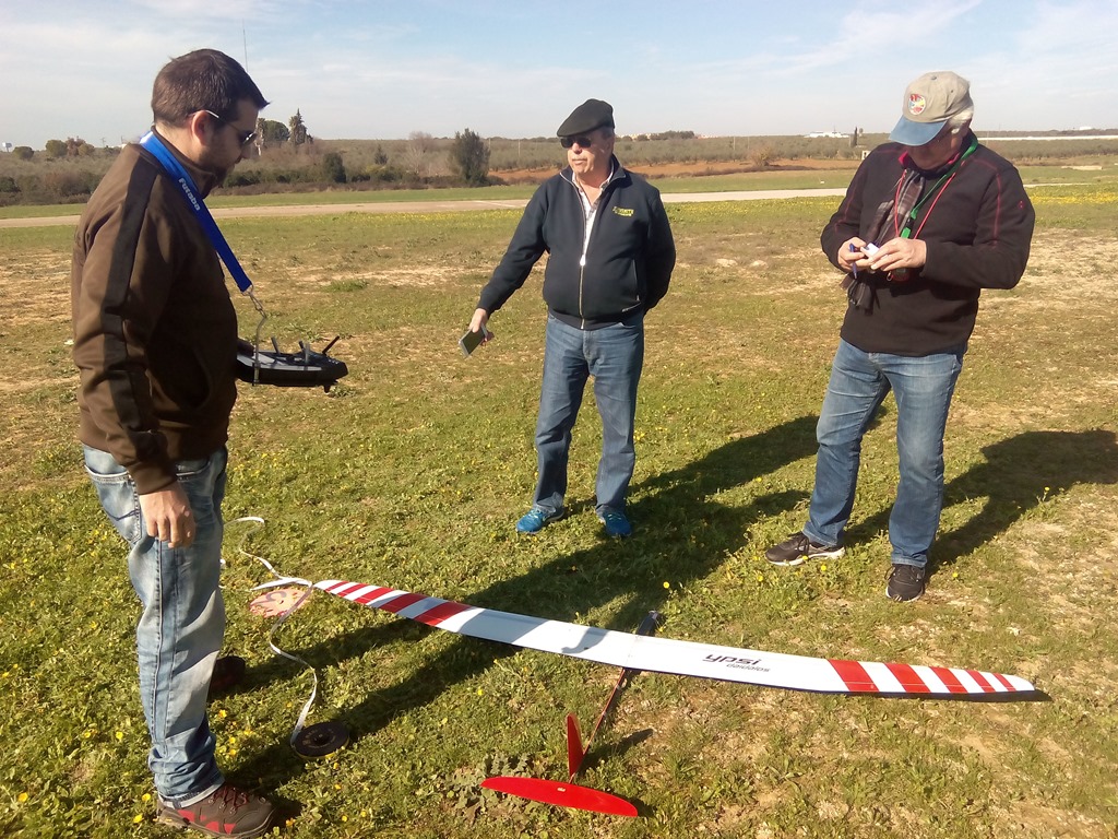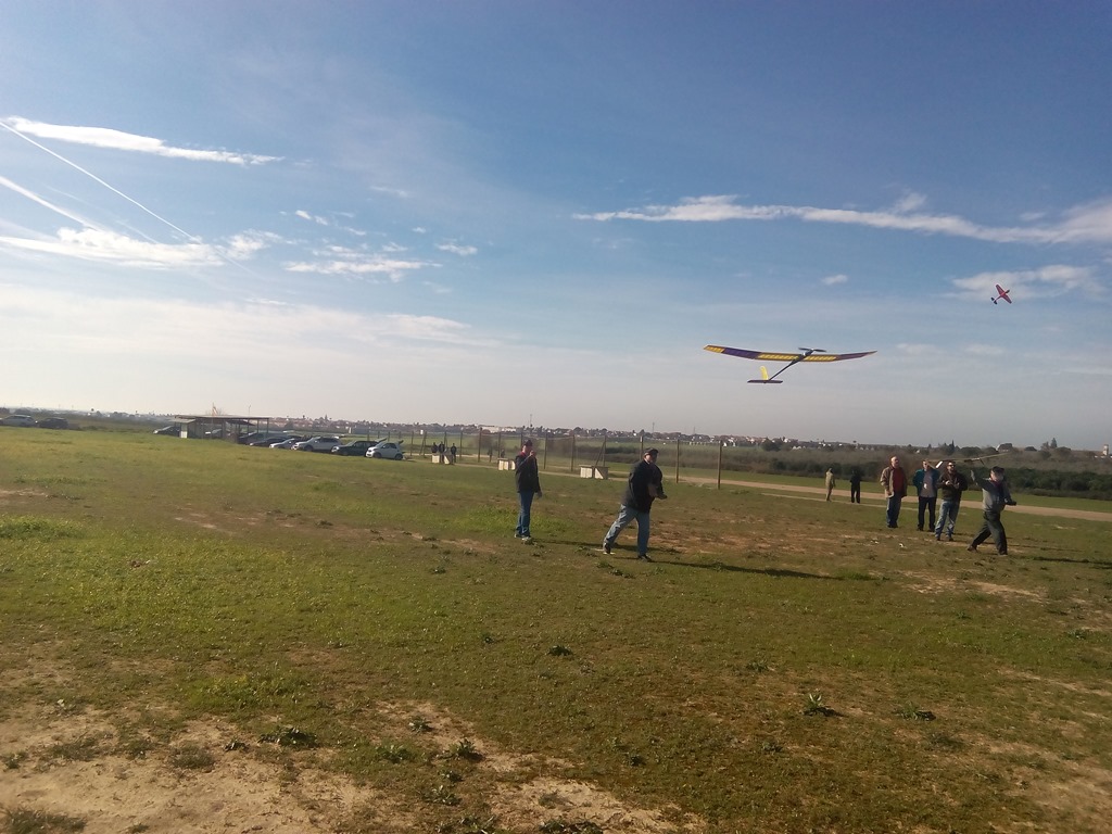 A los efectos de que los desplazamientos no tengan que realizarse el día antes o de madrugada habíamos quedado en empezar la prueba sobre las 11:30, al final comenzaría un pelín después, no había ningún problema, la pista del Club radiocontrol Sevilla se encontraba repleta de aeromodelistas y, como en otras ocasiones, compartiríamos el espacio aéreo entre los practicantes como hobby y los que competíamos; los modelos presente merecían la pena y quizás nos distrajimos más de lo deseado ![]()