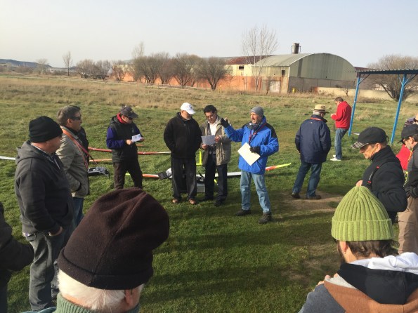 Después de una charla con los cronometradores y posterior reunión con los pilotos comenzaría la competición; en el sorteo le tocó salir en primer lugar a Luis, el resto lo haría por el orden de los dorsales y partiendo desde él. Se dijo que la última manga sería la que se estuviera volando a las 14:00, y fue la quinta, para la puntuación final se eliminaría la peor (si se realizaban mas de tres).