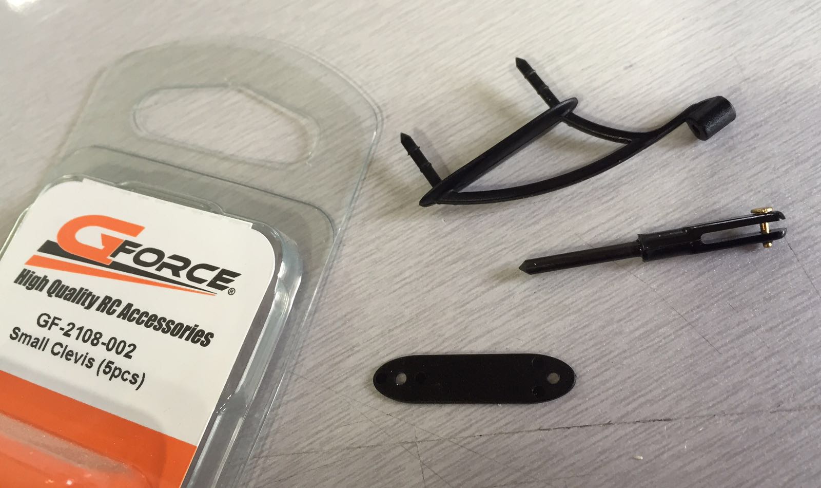 - "Clevis" de MP-Jet y varilla de carbono pegados con unas gotas de ‘ciano’