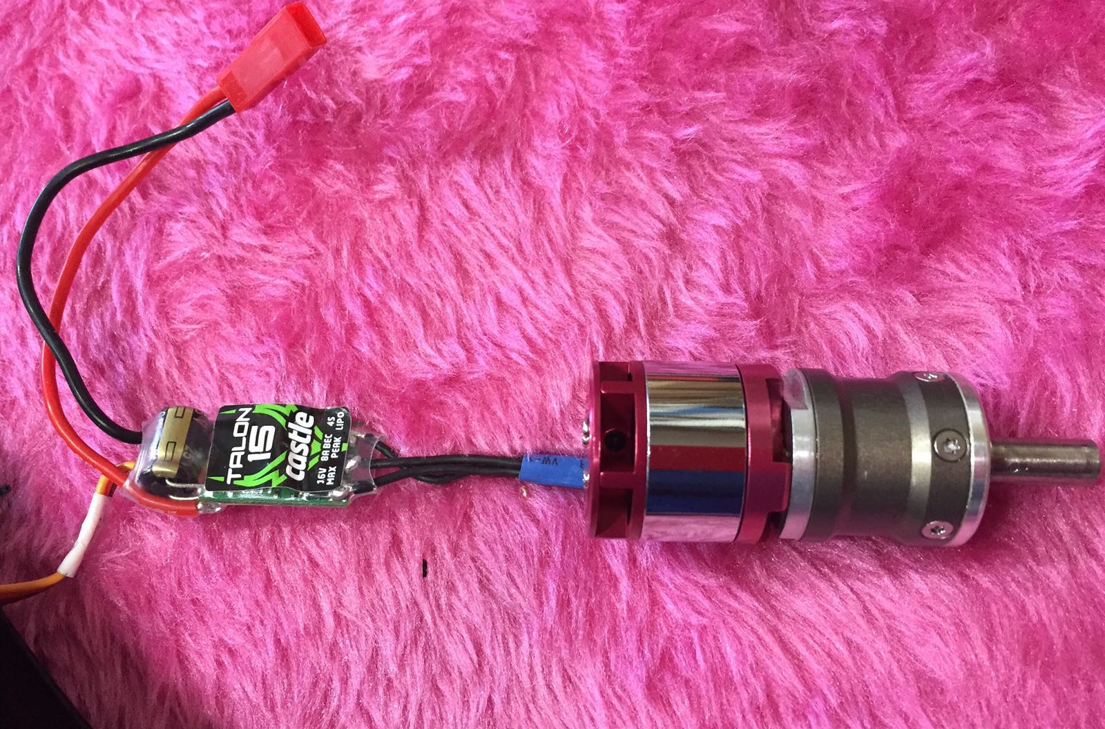El regulador un Talon15 de Castle. Me gusta soldar los cables del regulador con los del motor, se consigue buen peso y menos fallos