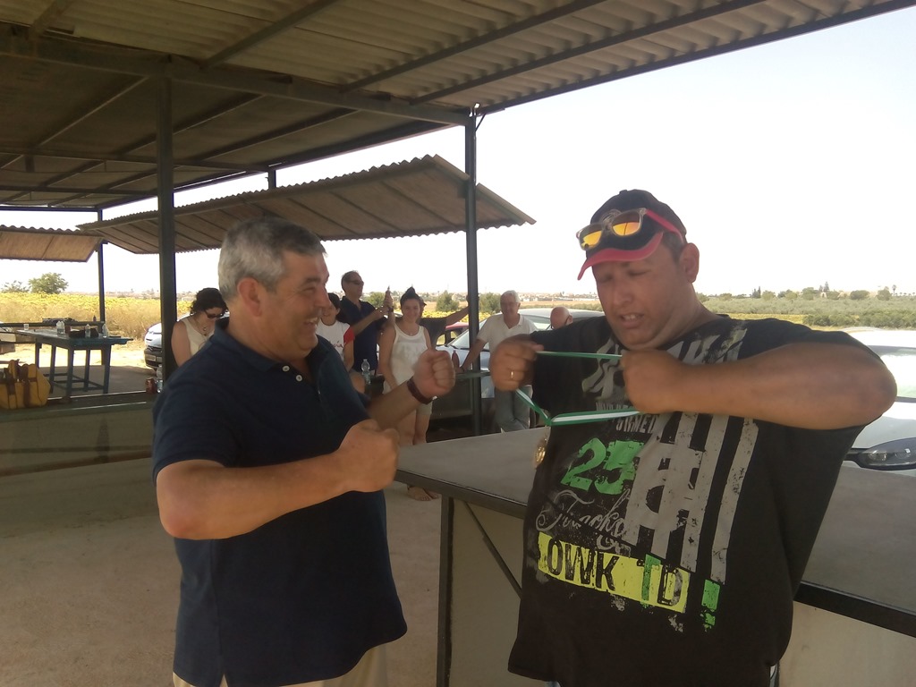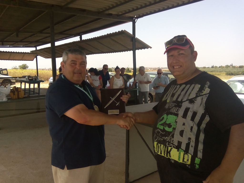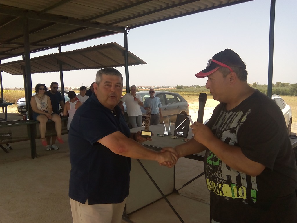 Una pena que nada mas que nos inscribiéramos seis, pero las fechas y, sobre todo, la alerta naranja por temperatura, disuadió a mas de uno de presentarse en el campo para una prueba que, aunque disputada, poco decidiría en la Liga, a excepción del tercer puesto por el que competían los dos, cariñosamente llamados, “niñatos” (todo por la envidia de algunos a la edad que tienen) Juan Rueda y Fernando Rodríguez que además son los que prevén organizan, montan y desmontan todos los campeonatos.