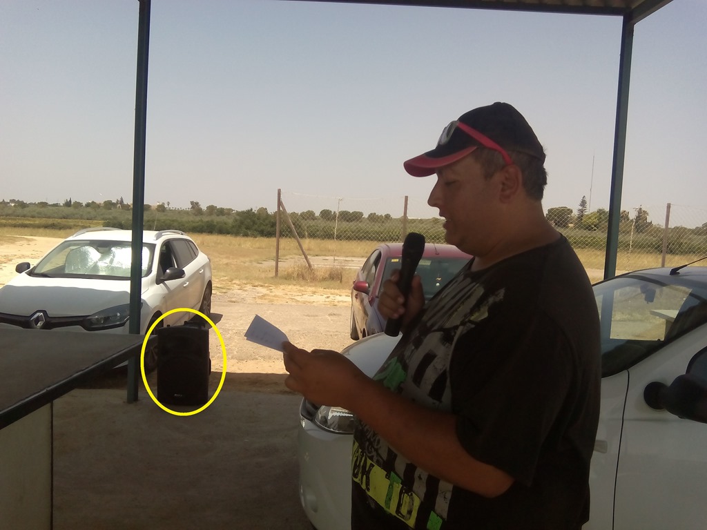 Nos costó empezar, lo que se preveía no instaba a saltar al ruedo, pero… A las 10:30 comenzamos usando una nueva secretaria un poco más gruesa y corpulenta con el temor de que, por el color (negro), nos dejara tirados a mitad de camino… Es un equipo de sonido portable facilitado por la FEADA (Federación Andaluza) para usar en eventos deportivos; se portó y no hubo incidencia en su funcionamiento, luego la utilizaríamos también en la entrega de trofeos.