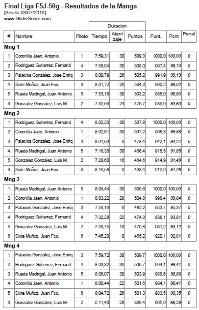 El pasado domingo (3-julio), con la fresquita (jijiji) se celebró en las pistas del Club Radiocontrol Sevilla en Bollullos de la Mitación la quinta y última prueba de la Liga Andaluza/Extremeña de la Fórmula Nacional de F5J, mas conocida por “50g”…