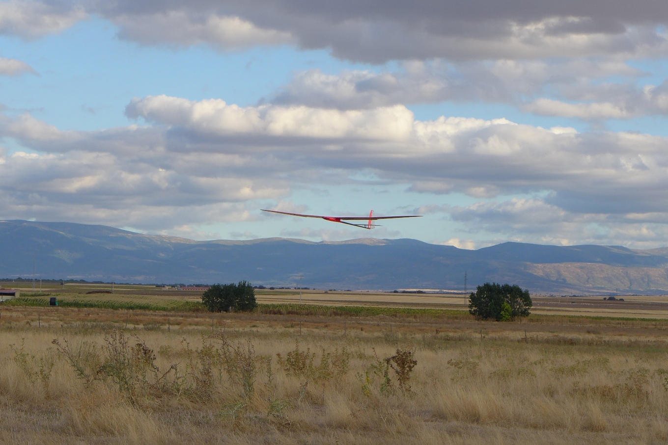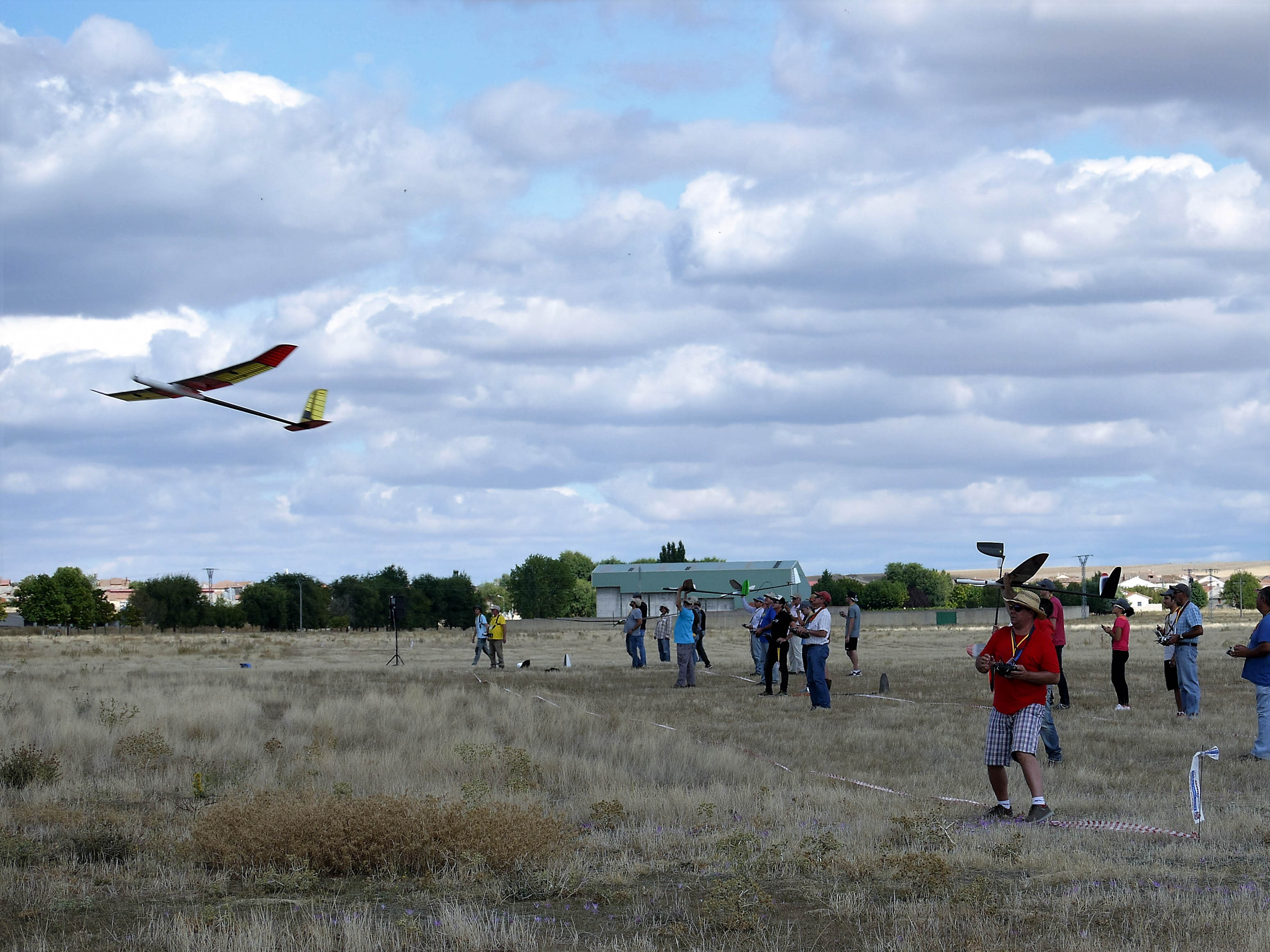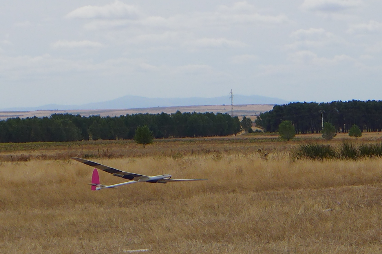 Con la megafonía en marcha (gentileza del Ayuntamiento de Escalona del Prado), las 16:00 horas comienzan los vuelos divididos en dos grupos. Con orientación norte, despegamos y buscamos la ansiada ascendencia, pero resulta muy esquiva, algunos encuentran y resisten en zonas con ligera actividad, que solo se puede aprovechar con un fino pilotaje. Pero, como tantas veces, ¡ay del que no encuentra nada¡, al suelo sin remisión y sin poder hacer más que una fracción de los 10 minutos pretendidos.