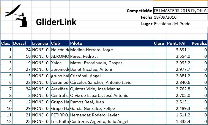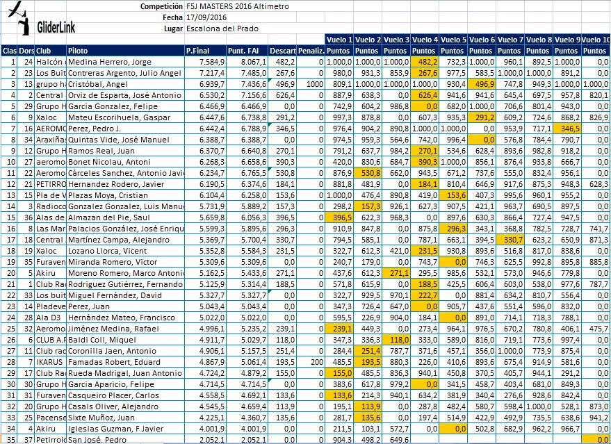 La clasificación oficial podeis consultarla en: masters2016.gliderlink.net