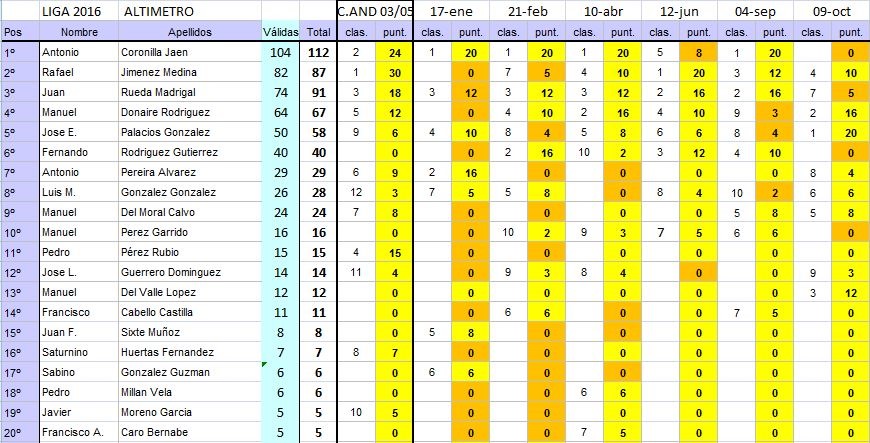 Añadida la puntuación de la prueba a las ya acumuladas en el ranking, la clasificación final de la liga quedaría así:
