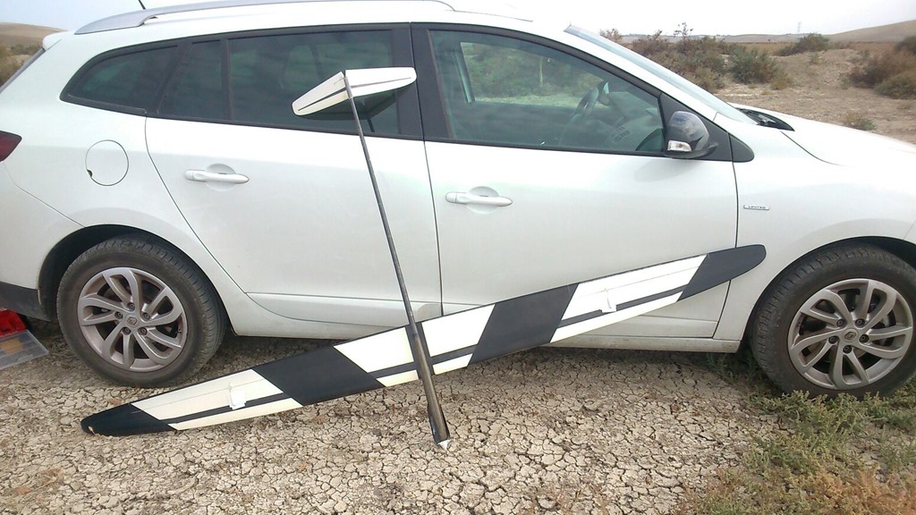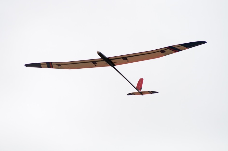 Ese peazo de modelo, diseñado para la modalidad de 50g, que pesa menos que un buñuelo, con un perfil marinado, estudiado en no se que aplicación, con whatsapp en las puntas de las alas (no se si tiene problemas de radio) y que aunque le pesa mucho el fuse, no llega a los 500g en total, con dos metros y medio de envergadura y avanzaba en ocasiones mas que los HM, Vulture, Electra, Pike… de todo esto me enteraba de casualidad y sin mucha ‘precisión’ porque estaba con el viento en contra y se llevaba el sonido… Espero que José Enrique pueda aclarar mis dudas… ![]()