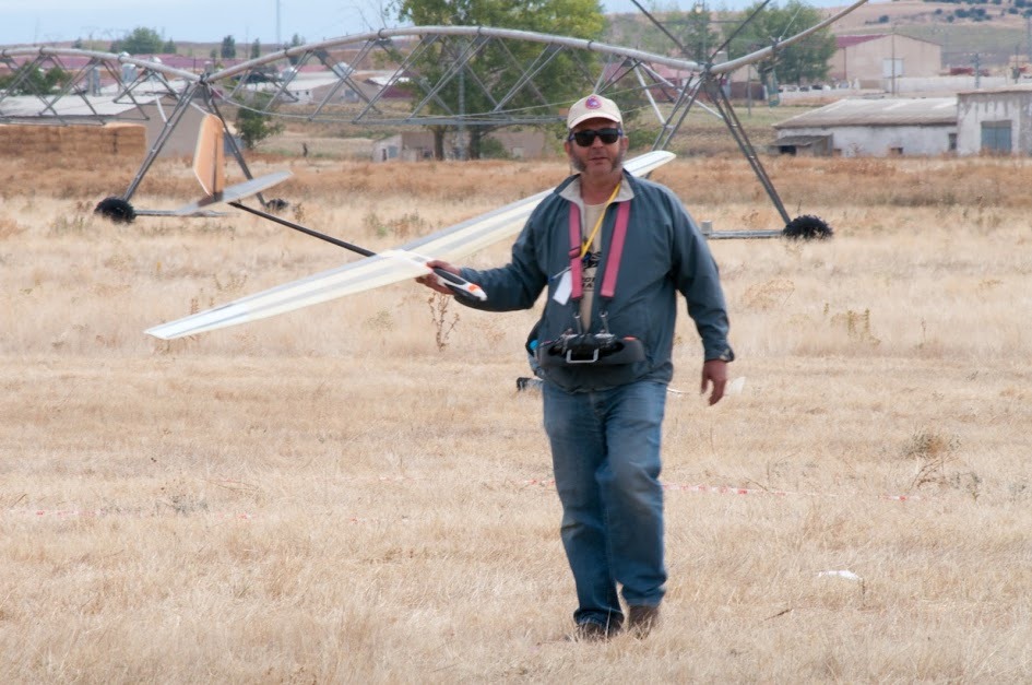 El tercero ha sido David Miguel, un chico que nos preocupa a los más veteranos porque se está acostumbrando demasiado pronto a eso de pisar podio, aunque sólo hizo un 1.000 sus vuelos son un dechado de regularidad tanto en los vuelos como en los aterrizajes que hoy pudo disfrutarlos lejos de las encinas come-aviones del campo de Valdemorillo, salvo el despiste inicial común a todos, hasta Marco Antonio cayó en la trampa como refleja el testimonio gráfico.