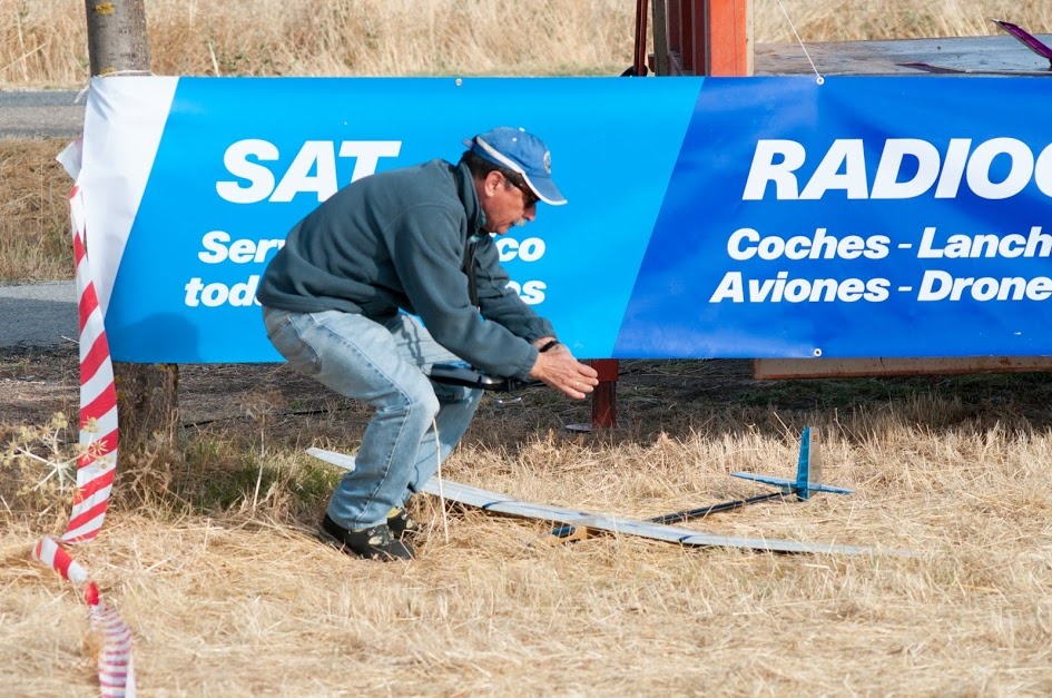 Excepción hecha de Pedro Silva Poblador, el único valiente que concursaba con velero y tiempo de motor de K6, que se fajó a fondo durante todo el concurso pero que en un día tan complicado como hoy en cuanto a que las térmicas claras no llegaron hasta las dos últimas mangas, y con un personal al que se le va notando la experiencia en concursos de altímetro que reclaman soluciones a baja altura de corte de motor pudo darnos pocos sustos, pero voló todas las mangas y disfrutó como el que más.