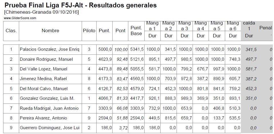 - De 12 concursantes (Pedro San Jose hacía el número 13 pero su conjunto motor no permitió salir a volar), 10 acabaron con al menos 4000 puntos