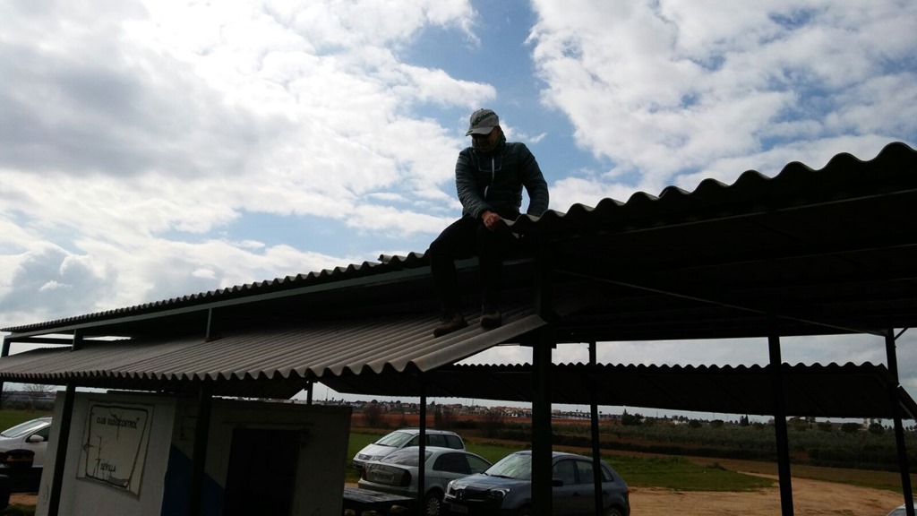 Ligeras disputas con el aire por la intensidad de éste y algún que otro incidente… posado en la red de seguridad de la pista, clavado del modelo, toma en el tejado… fueron algunos.