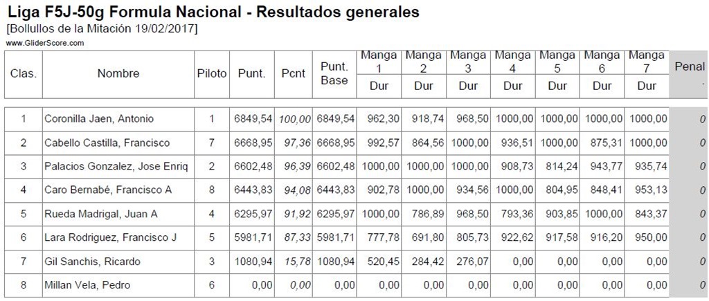 Sobre las doce, con un aire nada despreciable y después de una pelea con el ordenador para dejarlo a punto a los efectos de la introducción de datos comenzaría el primer concurso de la Liga de éste año con siete pilotos. Los inscritos eran ocho aunque Sabino avisaba de que no participaría y Pedro se retiraba esta misma mañana pero se incorporaría F Javier Lara.