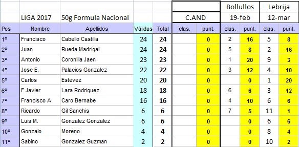 Clasificación general de la prueba y Clasificación actual de la Liga Andaluza 50g