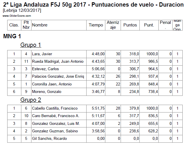 Liga Andaluza F5J-50g. Prueba de Lebrija 12/marzo/2017