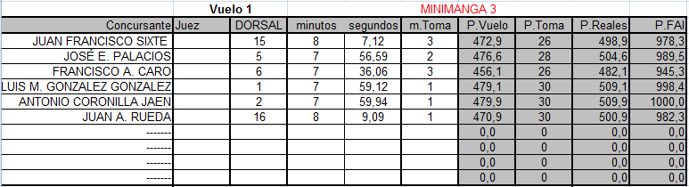 Hubo vuelos muy igualados en cuanto al tiempo de vuelo, igual con cuatro minutos que los cercanos al pleno (ocho), los cinco o seis participantes aterrizaban casi al mismo tiempo en muchos de ellos…