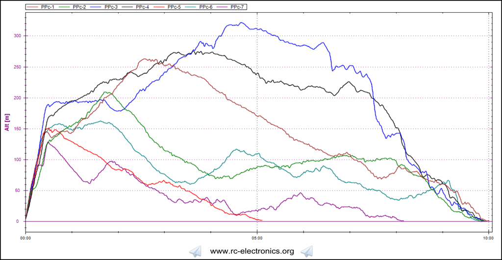 Y hablando de gráficas y datos almacenados… en concursos largos (de vuelos) como éste MASTERS hay que tener en cuenta, los que tienen aún los altimetros de RC-Electronic, que el modelo “RC Altimeter FAI #2” sólo graba unas tres horas