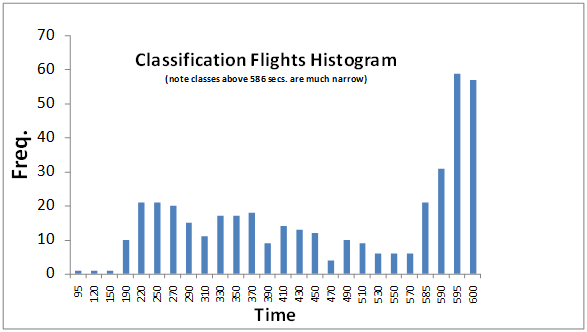 Como apunta en la nota, llama la atención como se agrupan los tiempo por encima de los 585 segundos; una idea del nivel de los participantes.