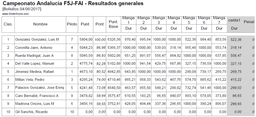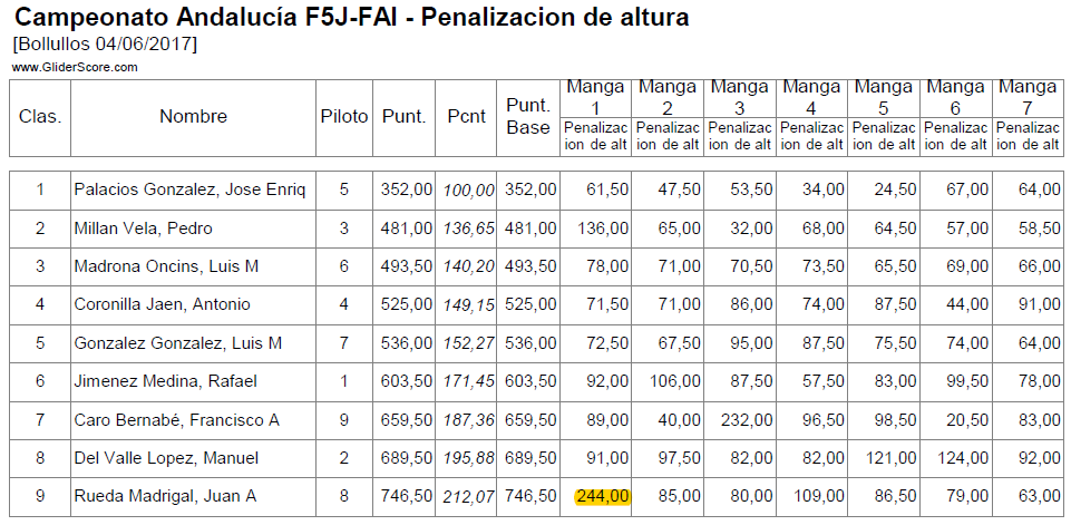 La clasificación podrá consultarla cada participante mediante la herramienta Gliderlink.