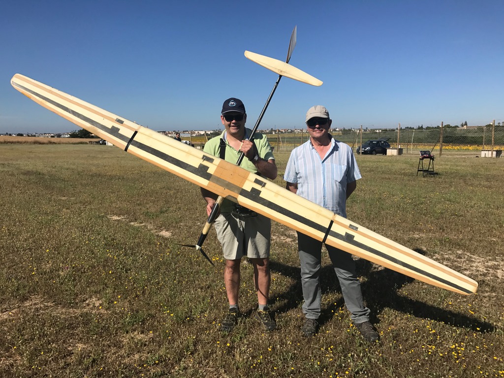 El tooorrrrpe era yo, que estrenaba mi flamante Vinco un producto nacional de calidad que dará mucho que hablar, pero que no tenía recambio de una pala tan extraña como las anoréxicas GM de 16*8 y que no se me pasó por la cabeza que la gente fuera tan freack como para llevar al campo de vuelo (en casa a lo mejor) una 16*8 GM así que con gran dolor de mi corazón empecé a desmontar el velero. Cuando de repente aparecen Antonio Tirado y Alejandro Rodríguez preguntándome por la pala que necesitaba y ofreciéndome una nueva sin estrenar para que la usara. Aunque no pude volar porque el motor se vio afectado por el uso con la pala rota, os puedo asegurar que el detalle de los dos supuestos rivales, que en vez de pensar en quitarse de en medio a un competidor directo se desviven por conseguir que supere las dificultades que le impiden seguir volando, es de esas lecciones que se aprenden en los concursos de vuelo a vela y que son gestos que hacen la vida más amable y llevadera: muchas gracias a Antonio y a Alejandro, a pesar de vuestra buena voluntad no conseguisteis neutralizar tan alto grado de torpeza y mala suerte.