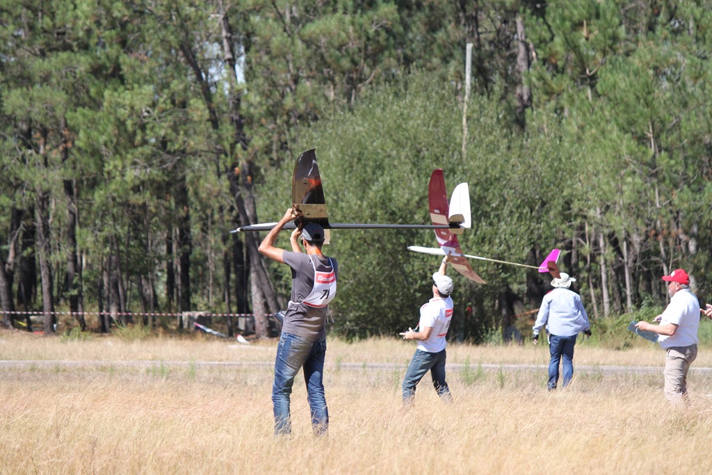 Gonzalo exhibiendo el regalo de GRAUPNER a los pilotos y ayudando a uno de ellos
