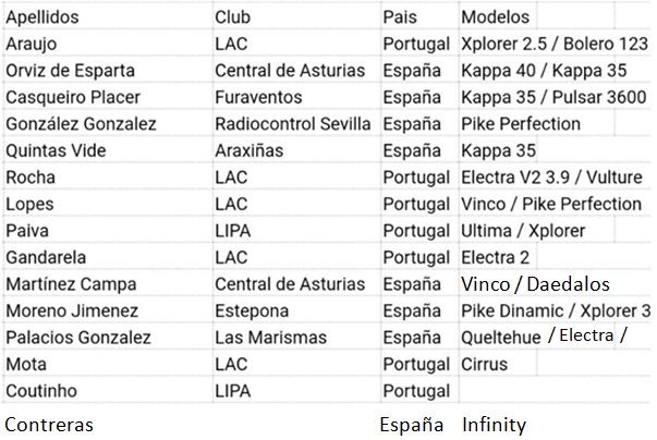 El otro día pedía las licencias(RFAE, no FAI) de los integrantes del ranking con el fin de cumplimentarlo, se me puede hacer llegar por correo (luis_f5j_es"arroba"hotmail.es) o por whatsapp (en cualquier chat o mensaje particular).