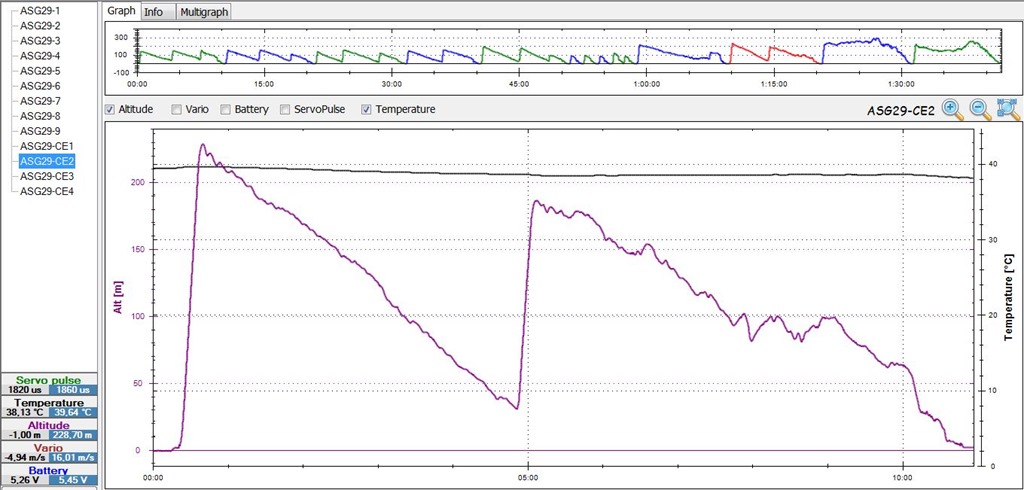 Un día excelente de vuelos para estos ‘bichos’, no hacía demasiado viento aunque corriera una ligera brisa, el inconveniente es que racheaba y su dirección no siempre coincidía con la de la toma; como es normal en esta prueba se contaría con los ‘gassensor’ para el control del vuelo en cuanto a los tiempos, de vuelo y de motor.