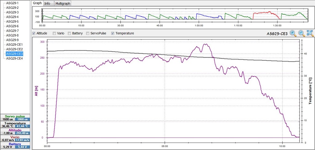 Claro que cuando comenzaba el 4º y último vuelo el mismo chisme marcaba 46º y terminaba en 39º, serían las 13:30 más o menos.