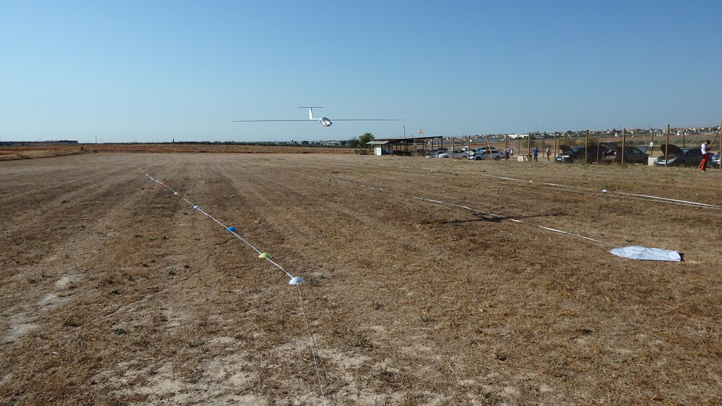 Una pena que Coronilla en su primer vuelo no consiguiera aterrizar en el centro, en cuanto al tiempo de vuelo fue perfecto, 10’ 26,6” de vuelo con 26,6” de motor… 600 puntos (máximo) por el vuelo.