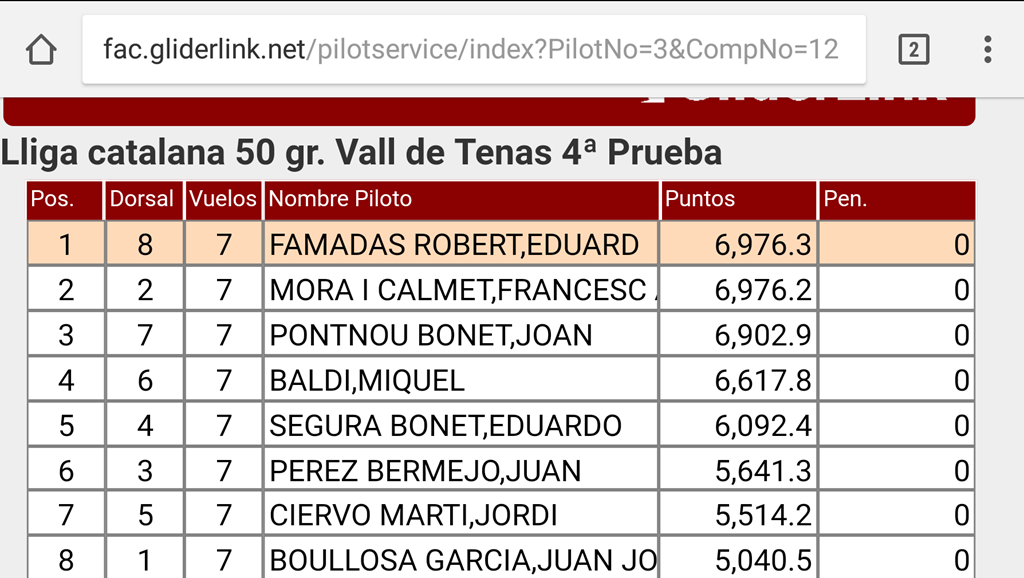 Séptimo Jordi ciervo que también estuvo cerca dos vuelos de mas de 900 y se quedo en los 5500 puntos, ultimo un servidor…5000 puntos.. a recuperar en marzo…jeje .