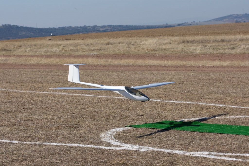 Todos los pilotos ‘condujeron’ su modelo desde unos cien metros de distancia dentro del troncocono marcado por el reglamento para la toma final… perfecto… y muchos acabaron su senda de planeo en la franja de césped artificial preparada por la organización para el ‘toque’ final. Dos videos (gracias a Antonio Pereira) nos acercan a ellos: