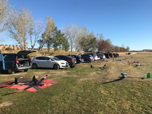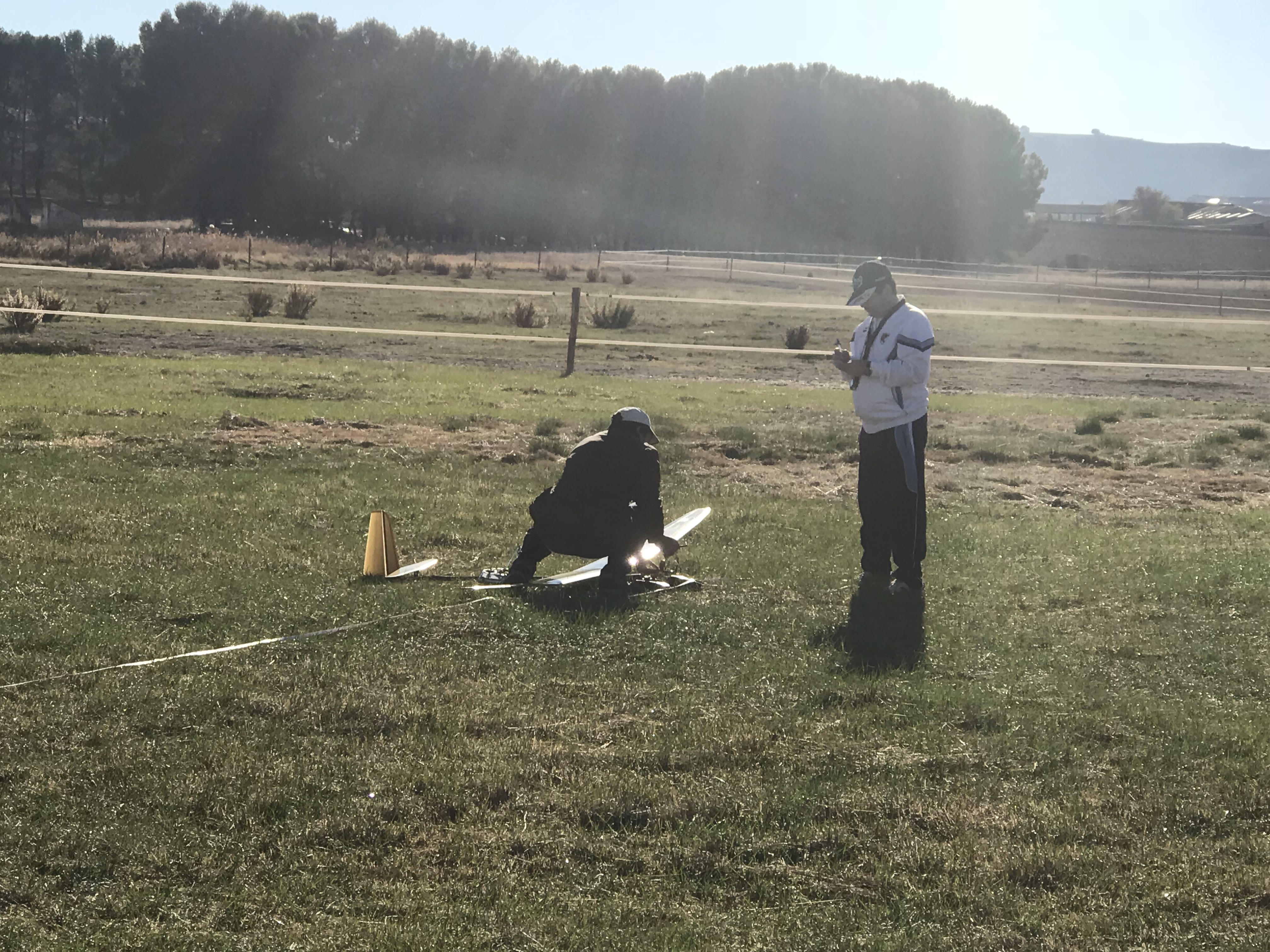 Se tenía previsto comenzar los vuelos sobre las 11 y, esta vez (sin que sirva de precedente, jejeje) se comenzó cinco minutos antes; los pilotos estábamos listos sobre las 10:30 y los socios colaboradores del Club Pacense que se harían cargo de los “gassensor” para tomar los tiempos requeridos en la competición estaban igualmente listos, el tiempo invitaba al vuelo y algunos hicieron sus pruebas antes… ¿para que esperar mas?. Se había acordado hacer cuatro vuelos, se eliminaría el peor, y la cadencia de despegue sería cada cinco minutos… Se realizaría un simple sorteo para asignar el orden de despegue de los pilotos y… a volar.
