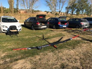 Visto desde el que ha conseguido irse sin romper ha sido divertido y las condiciones de vuelo han forzado a que cada piloto sacara lo mejor de sí mismo para no hacer vuelos de dos minutos. Y eso que nadie ha estado los diez arriba en ninguna de las mangas, así viéndolo en positivo, hemos llegado hoy más prontito a casa. Divertido porque los meneos y contorsiones que hemos visto hacer hoy a los veleros en las maniobras de aproximación y toma de tierra es complicado ver en un concurso “normal”, y muy divertido cuando eras capaz de aguantarte sobre la pompita que se interpuso en tu camino mientras que los demás han seguido perdiendo altura y van a precederte al punto de aterrizaje, desatando los comentarios más mordaces de la mañana por pura juerga de arremeter contra el “ventajista” de turno que trata de estirar y aguantar para meter cuantos más puntos de diferencia mejor, sea Enrique Cobo con su Supra home made o sea Antonio Reina con su flamante Electra que retomaba la competición después de una larga temporada dedicado a los más variados y variopintos cacharros voladores.