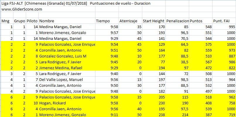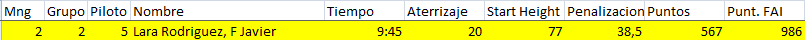 La altura de partida máxima en este concurso fue cosa de Gonzalo, 238m, que tampoco escapó de la ‘rareza’ de las condiciones y el mejor rendimiento de un vuelo lo obtuvo Javier Lara que partiendo de sólo 77m le faltó muy poco para hacerse con el vuelo