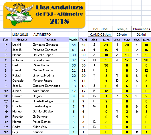 Una vez concluidos los vuelos nos fuimos a la casona del club donde mientras se introducían los datos de los vuelos en el ordenador se procedía a la comida de hermandad con la viandas que los propios deportistas trajeron para ello y además, por ser la última prueba de la ‘pobre’ Liga Andaluza de este año, se actualizó también el ranking de la mencionada Liga, que quedaría: