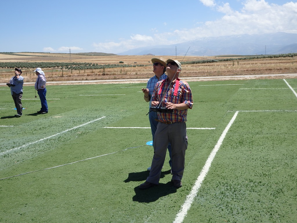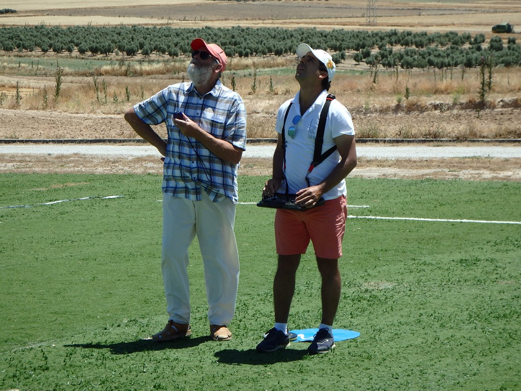 No se pudo comenzar a la hora prevista (10:00 para evitar lo máximo posible el horario mas caluroso) pero tampoco se retrasó tanto… Una vez realizado un rápido briefing, dirigido por Rafael Jiménez, se procedería a poner en marcha la grabación que llevaría el control del tiempo de la prueba. Más complicado fue que se entendiera por parte de los presentes que al no contar con cronometradores ‘dedicados’ deberíamos ser los propios concursantes los que tendríamos que cronometrar… “O vuelas o cronometras”, en una manga compuesta por dos grupos en la que participamos doce deportistas, seis vuelan y seis cronometran… No es lo mas cómodo, de cara al participante, para el transcurrir perfecto de un concurso, pero… no hay recursos (si no lo aportamos los propios deportistas) que asuman las labores de ‘auxiliares’, ‘cronometradores’, etc. en estos concursos. Gracias a algún aficionado presente algún que otro piloto pudo descansar en algún vuelo.