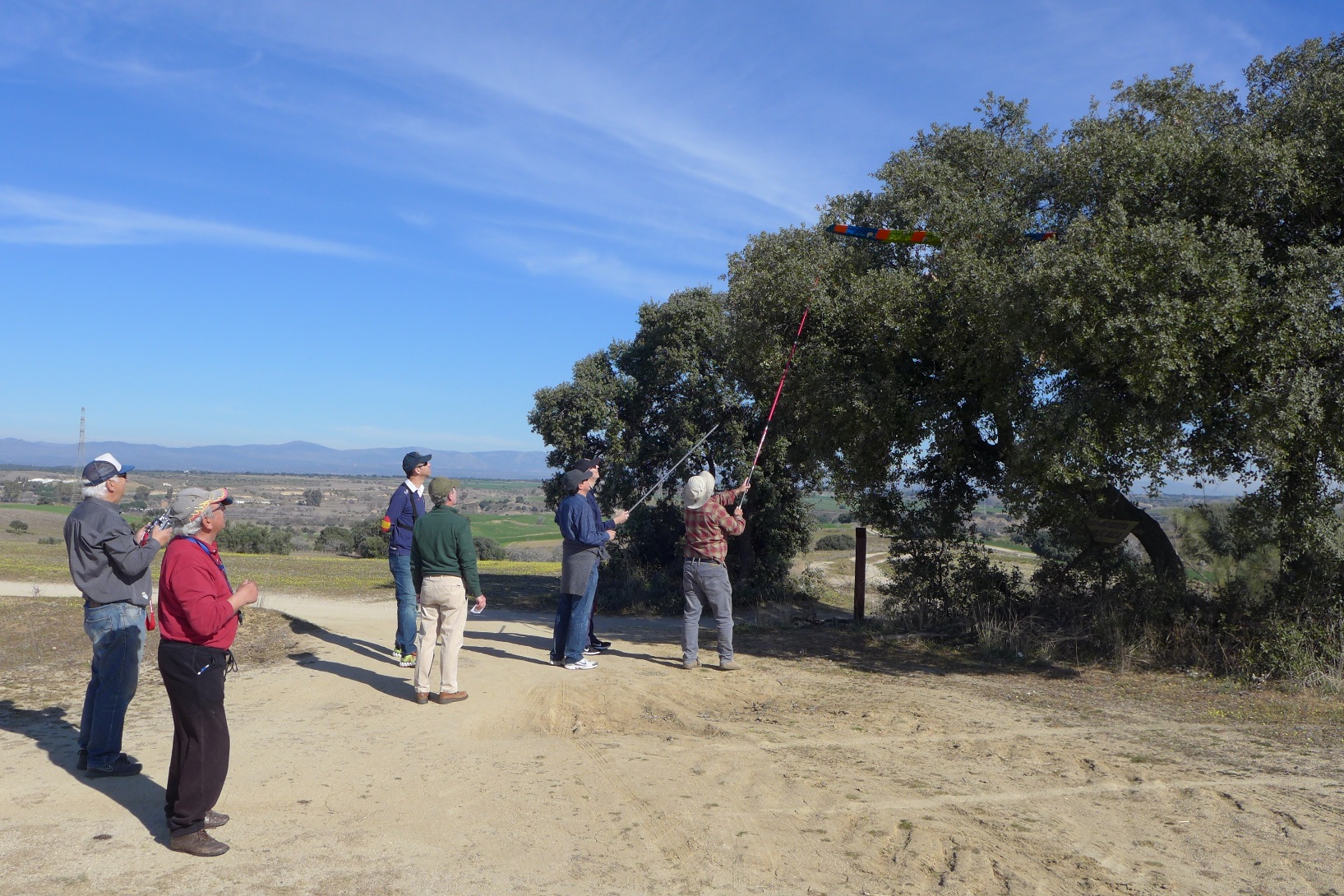Y no menos anecdótico e interesante fue el modo de sacarlo de entre la tupida copa: Julio Contreras sobre las ramas lanzando el velero al aire mientras que Paco Garay acciona el motor subiendo en vertical para luego estabilizar y aterrizar sin más daños que los característicos picotazos de las ramas en el entelado de las alas, que con unos parches de cinta estaban arreglados, como nos enseñaba el bueno de Arístides, que en paz descanse.
