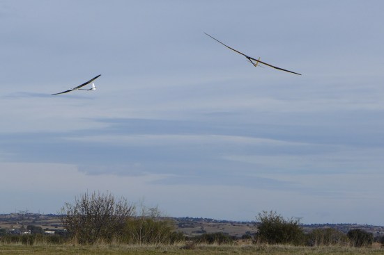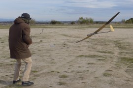 El cuarto clasificado del día fue el maestro Juan Ramos, que se hizo con tres de los cinco miles posibles pero que un severo pinchazo en la tercera manga le sacó del cajón del podio, ya que en esta modalidad no hay descarte del peor vuelo y si la cagas en alguna pues te la llevas puesta en la clasificación. Lo de maestro es que además de las sesudas sesiones sobre uso y manejo de los composites a las que hemos tenido ocasión de acudir que luego sabe aplicar a la fabricación de sus propios modelos, que siempre son competitivos, y que a medida que va renovando la flota y actualizando los perfiles de sus diseños son otros veleristas los que se benefician de su magisterio a través de esos aviones que han seguido compitiendo en otras manos.